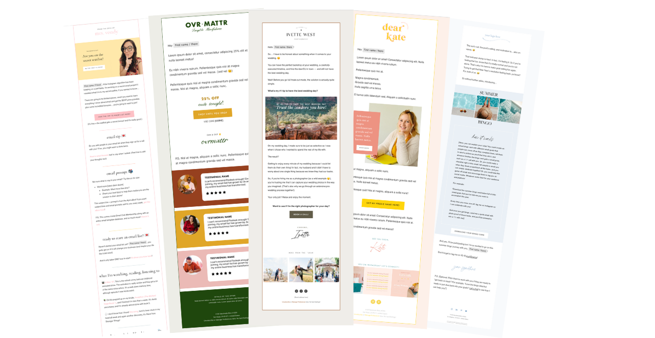 Emails I’ve designed for myself and my clients over the years in Flodesk.